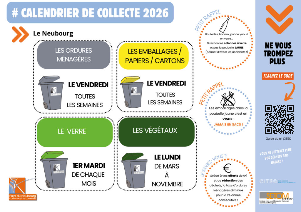 Calendrier de collecte des déchets 2026 – Ville du Neubourg