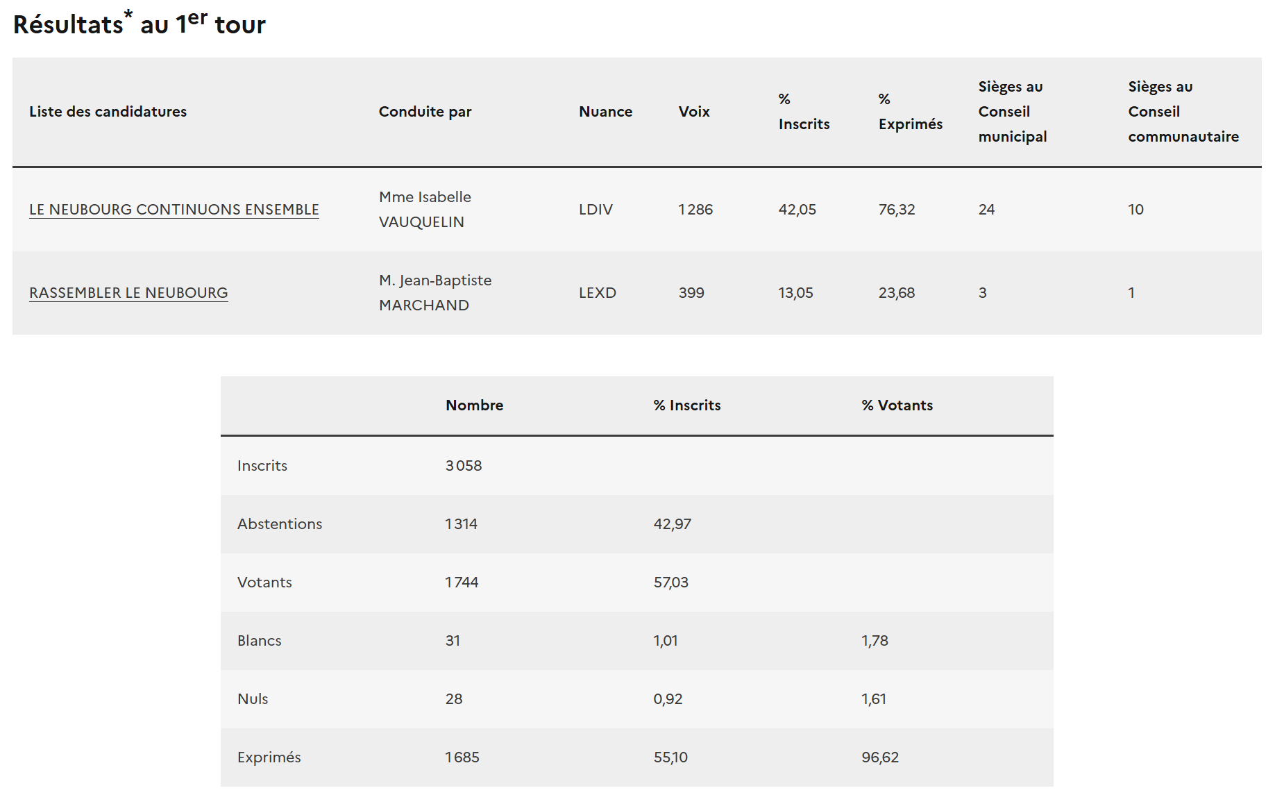 Au Neubourg, 57,03% des inscrits ont voté au travers des 3 bureaux de vote de la ville.