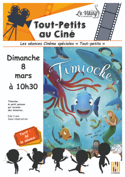 TOUT-PETITS AU CINE vous propose TIMIOCHE le dimanche 8 mars à 10h30 Le petit poisson qui racontait des histoires… Timioche, un petit poisson toujours en retard, ...